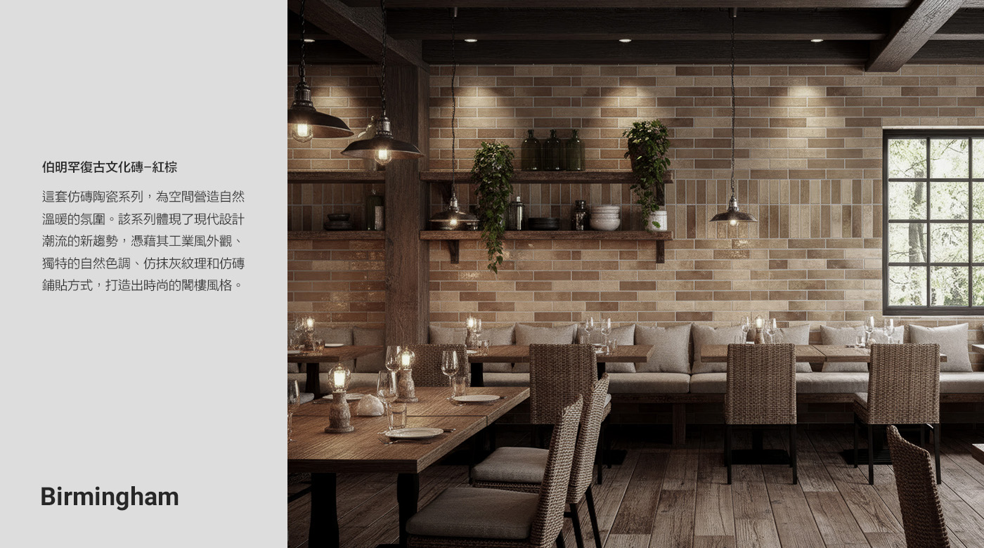 伯明罕復古文化磚-紅棕