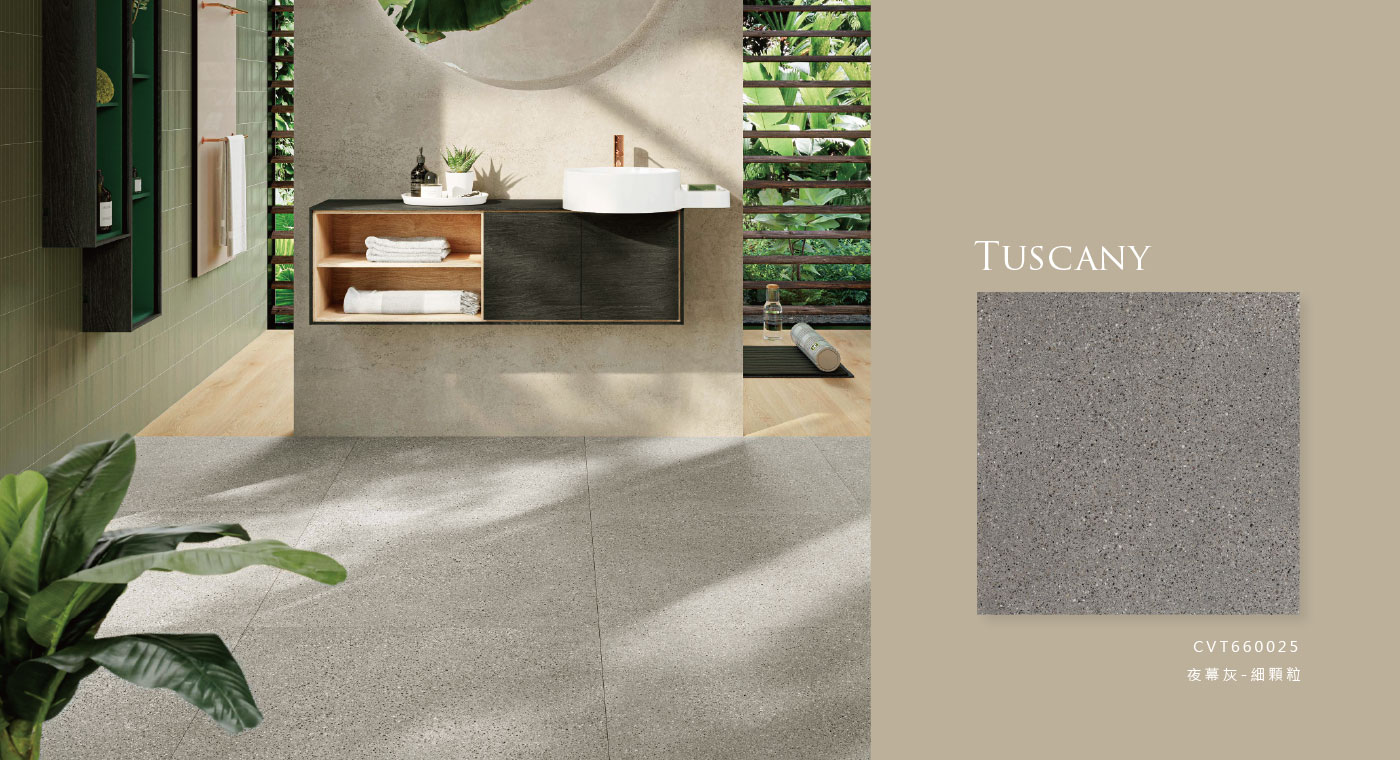 水磨石磁磚托斯卡尼,受極簡主義美學的啟發,將現代建築發揮出柔和並融合傳統的粗野主義外觀,並以各種樸實的色彩在和諧的溫暖紋理調色板中呈現。
