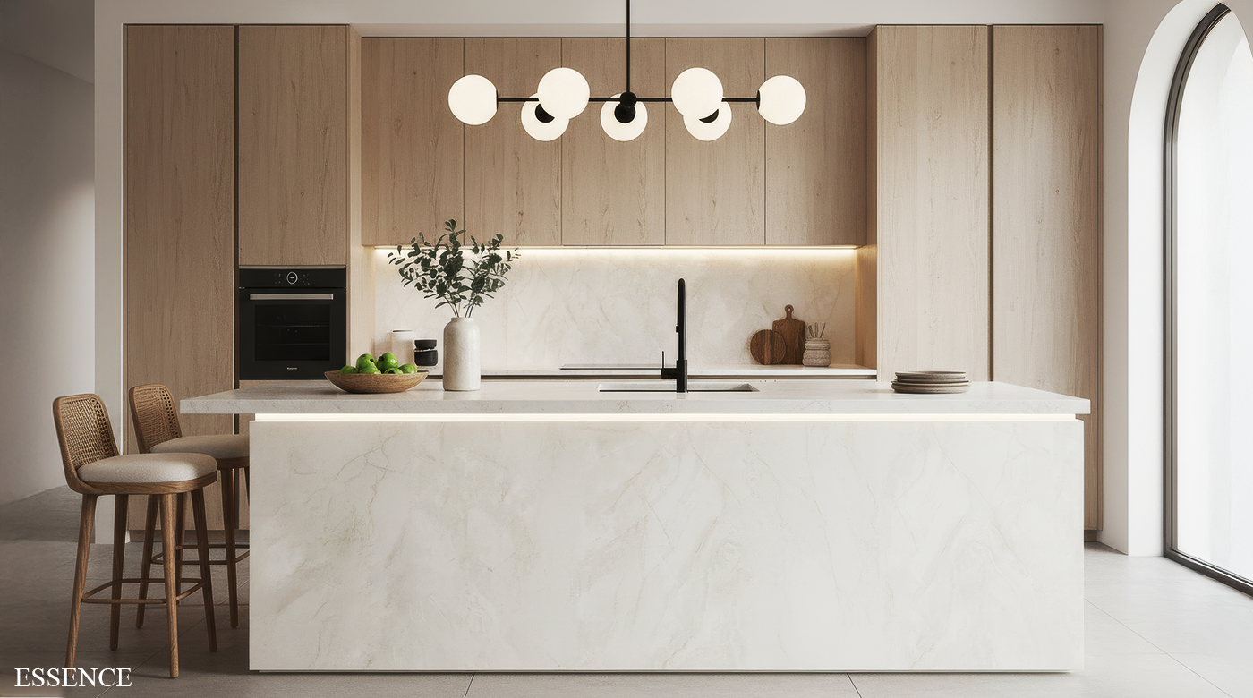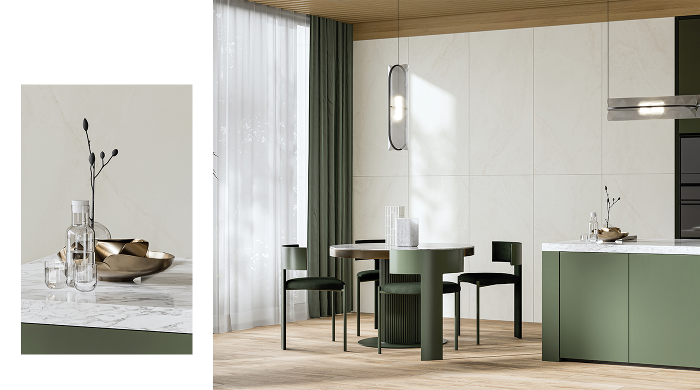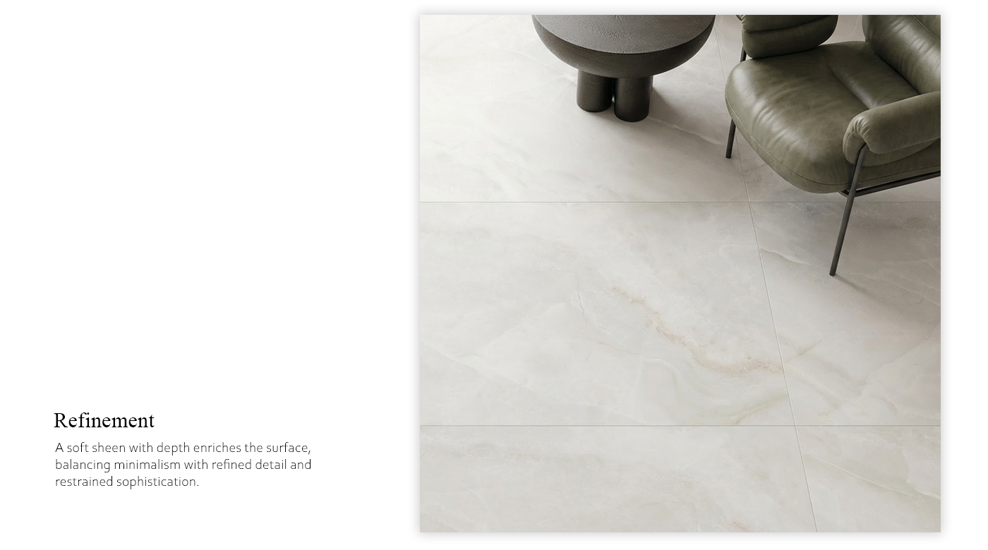 表面帶有柔和光澤與深度,使空間在簡約中蘊含細節,營造內斂而穩定的高級氛圍。
