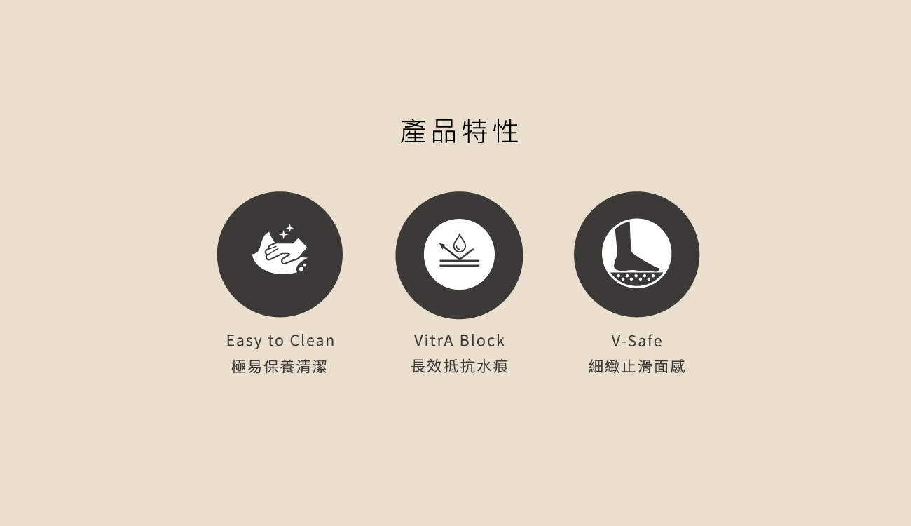 全系列產品採用最新奈米製程,具備長效抗汙、防水痕、易清潔、好保養等特性,