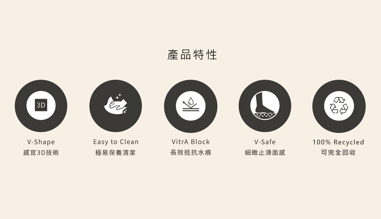 全系列產品採用最新奈米製程,具備長效抗汙、防水痕、易清潔、好保養等特性,