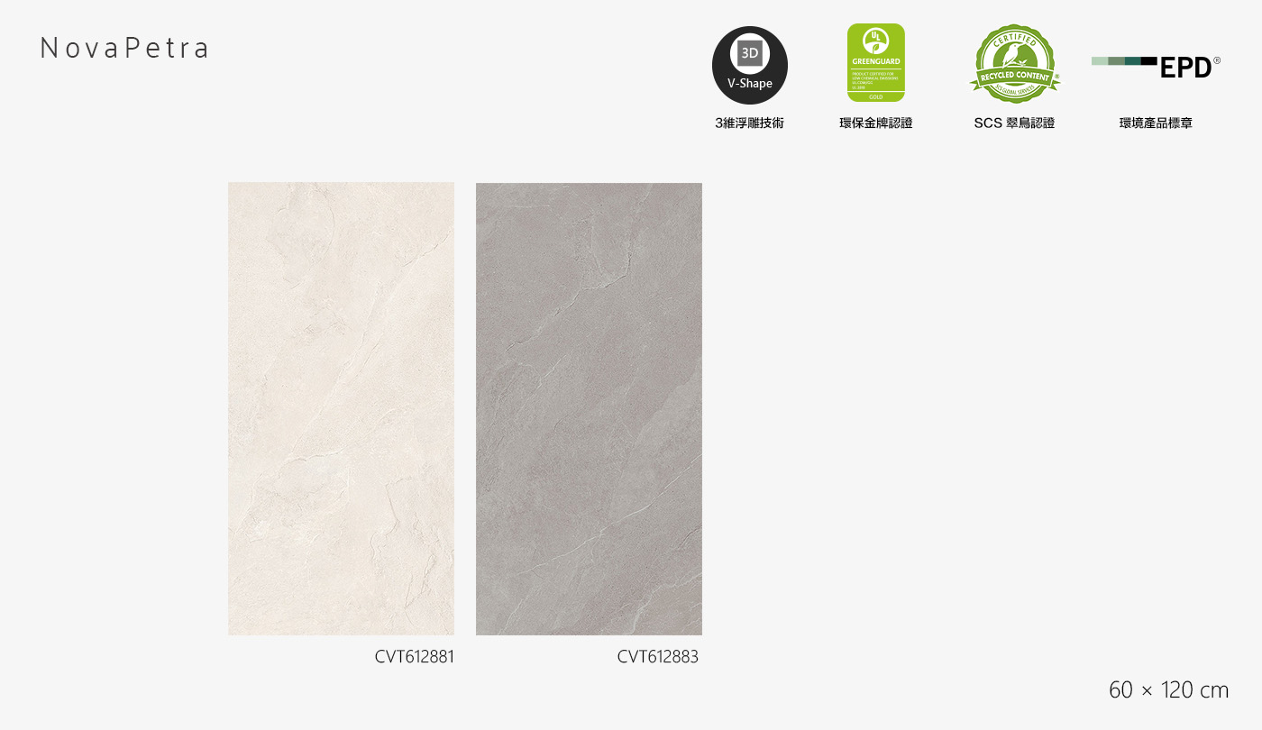 其冷暖色調豐富組合,打造精緻耐用的底色。 NovaPetra 完美詮釋了創新材料科技與卓越品質的融合,將大地永恆的特質融入現代空間。
