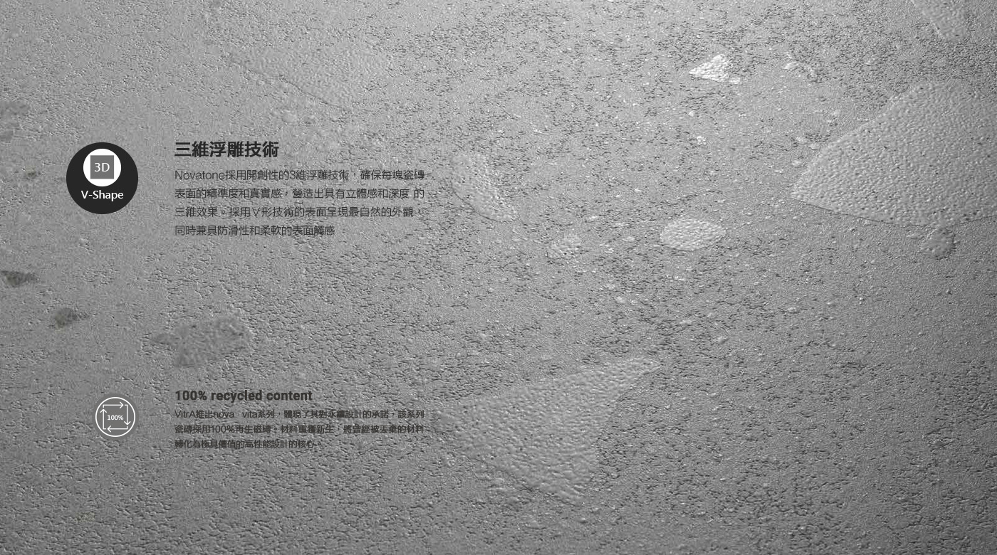 NovaFlake 系列,淬煉出水磨石歷久彌新的恆久之美。全系列100%回收廢料再利用,透過創新製磚工藝,重現水磨石的豐富內涵與深邃質感。