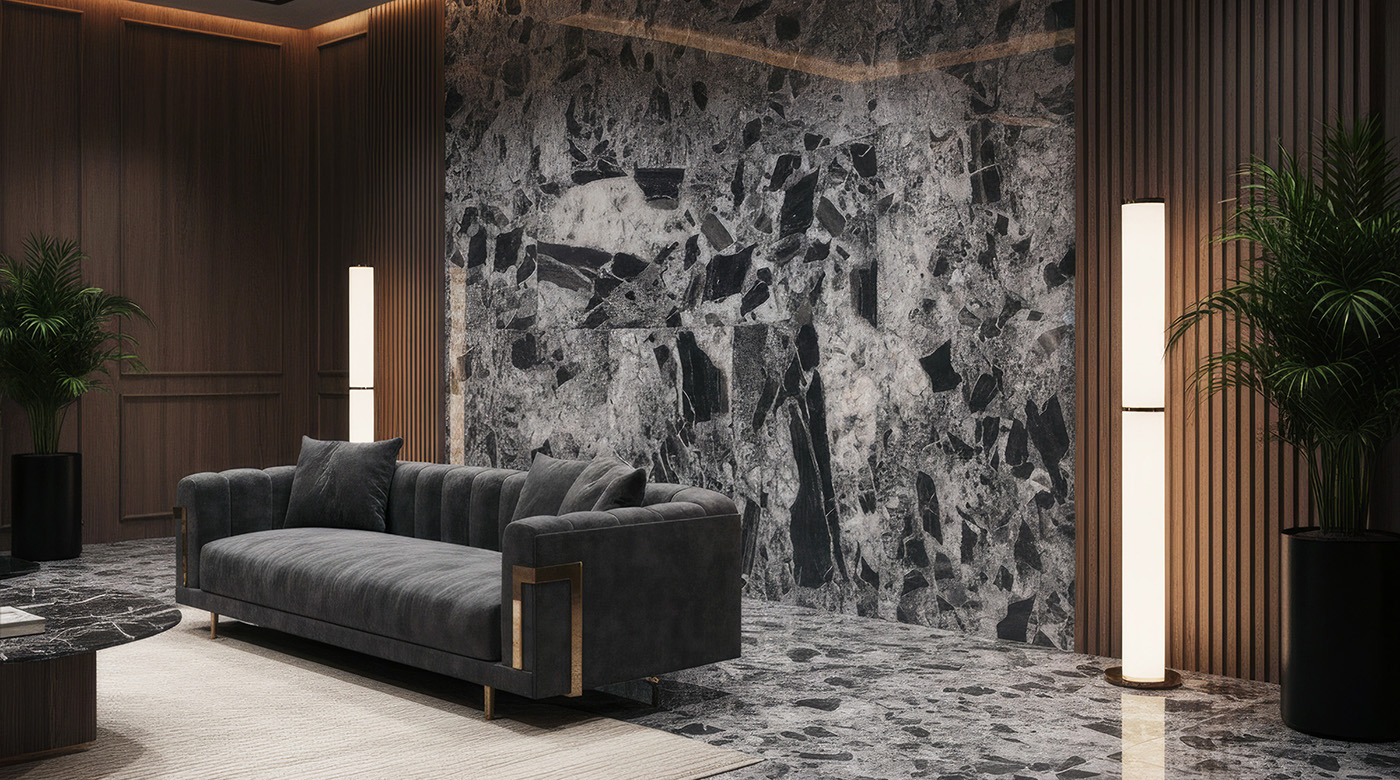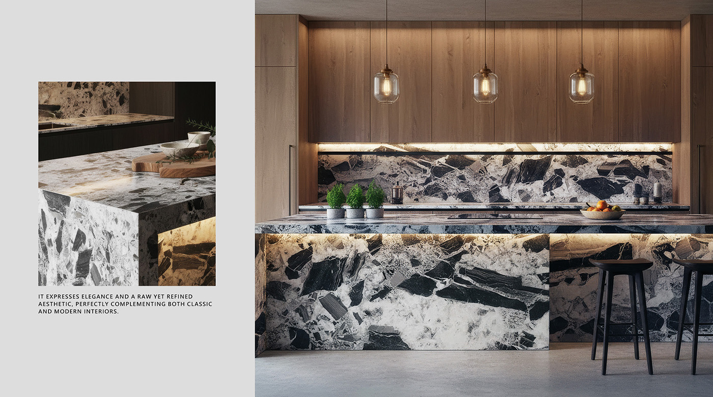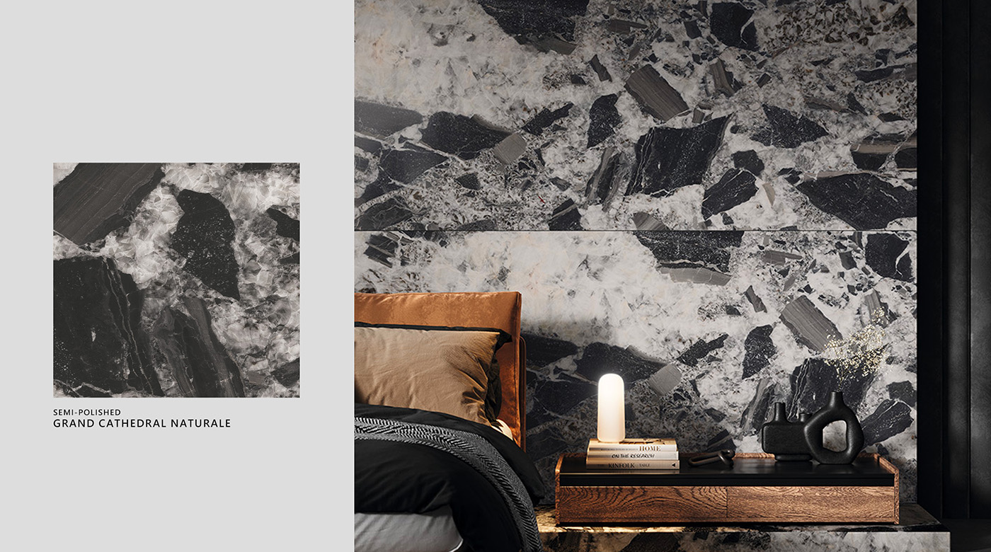 以優雅而內斂的美學語彙,詮釋精緻而沉穩的設計風格。半拋光表面柔和細膩,能夠昇華各式風格的視覺張力,與木質地或清水模完美契合,勾勒出輕奢且豐富的空間質感。