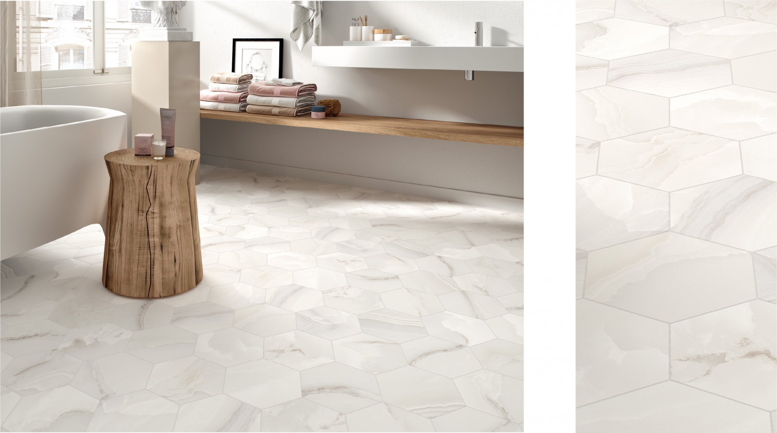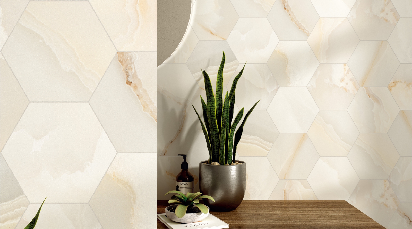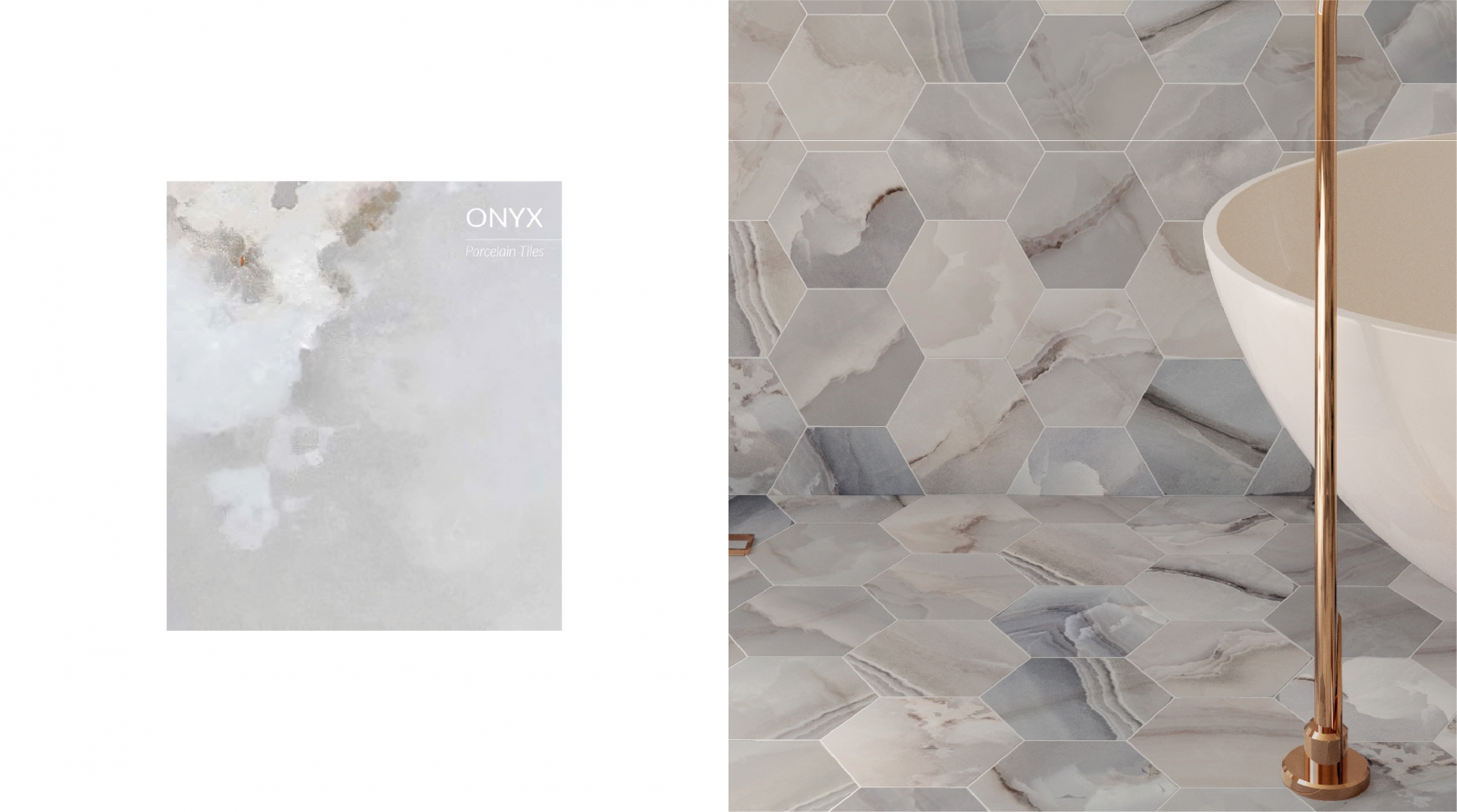 ONYX 系列,磁磚表面帶有細膩的紋理,色調柔和溫暖,層次自然暈染,整體質感沉靜內斂,營造出乾淨、舒適的空間氛圍。