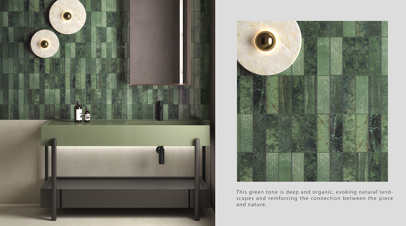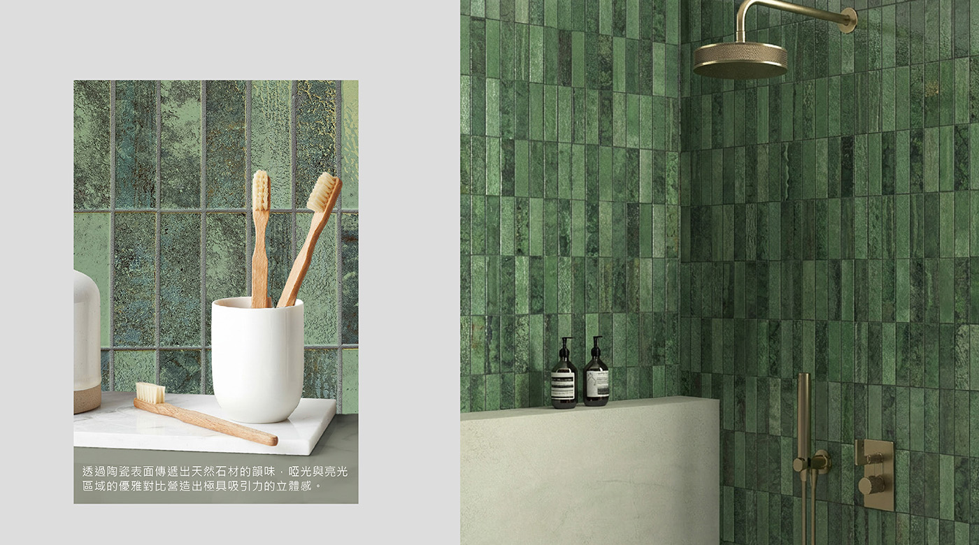 此系列將天然石材的內在質感轉化富含光影與層次的陶瓷表面。透過獨特的壓紋結構,營造出視覺層次,讓鋪貼效內斂而豐富。