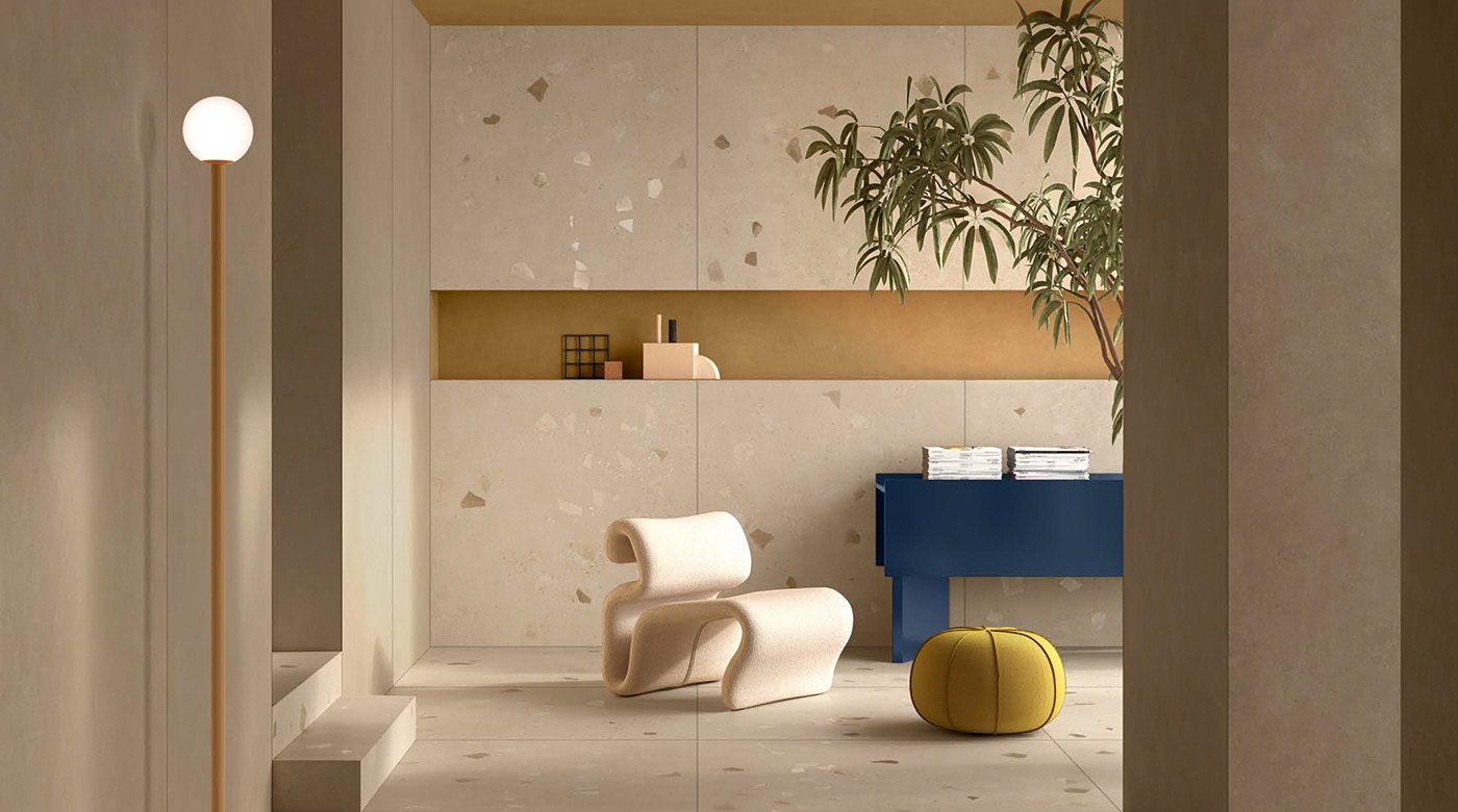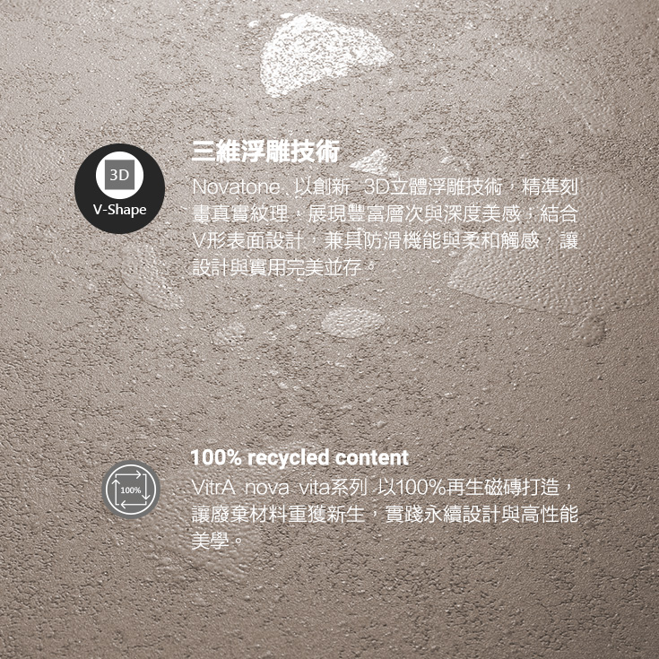 NovaFlake 系列,淬煉出水磨石歷久彌新的恆久之美。全系列100%回收廢料再利用,透過創新製磚工藝,重現水磨石的豐富內涵與深邃質感。