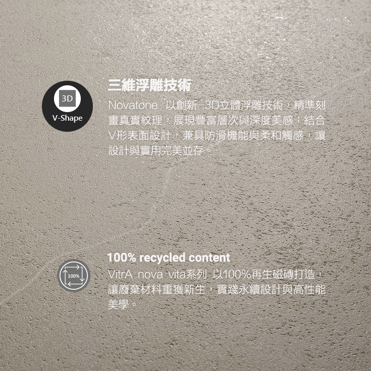其冷暖色調豐富組合,打造精緻耐用的底色。 NovaPetra 完美詮釋了創新材料科技與卓越品質的融合,將大地永恆的特質融入現代空間。