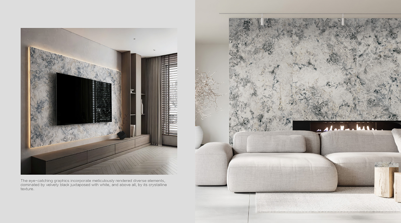 冷暖色調交錯輝映,搭配深色元素勾勒輪廓與深度,使整體視覺更顯層次分明。每一處紋理皆精雕細琢,彷彿自然造物的藝術結晶;閃爍光感與精緻線條相互呼應,營造出典雅且充滿格調的室內氛圍。