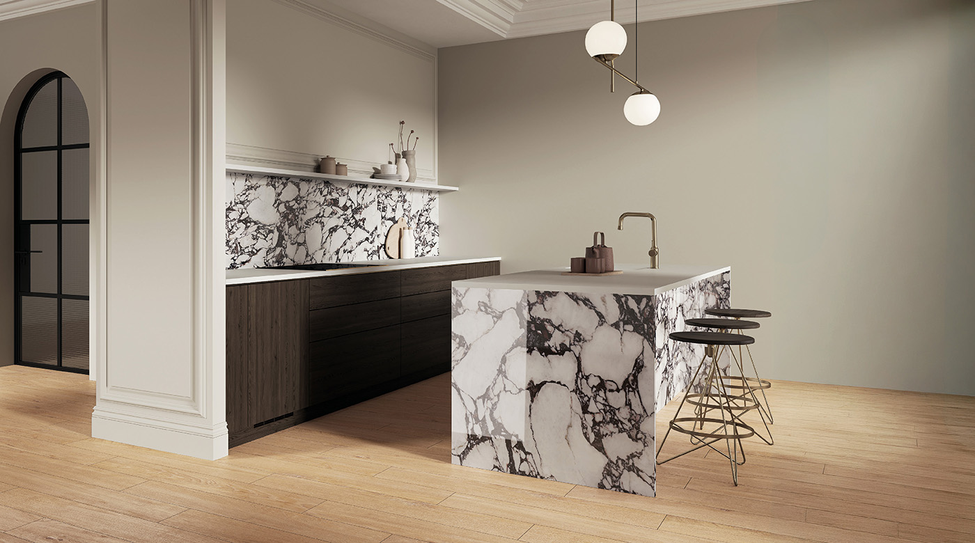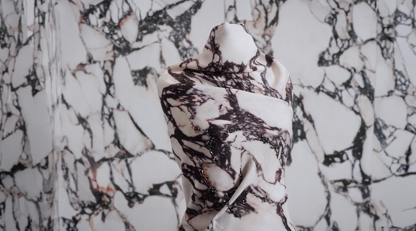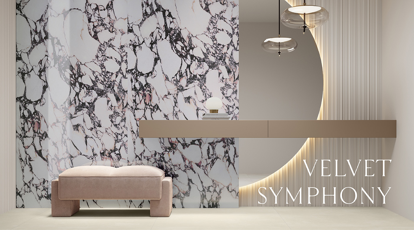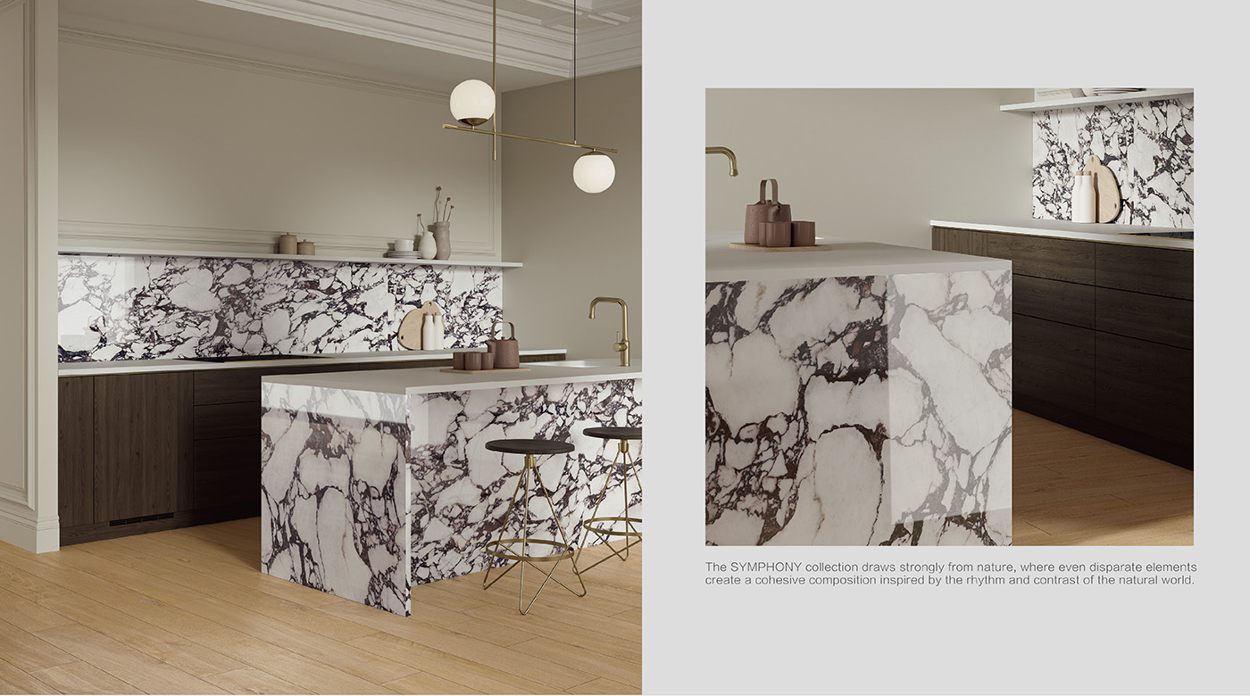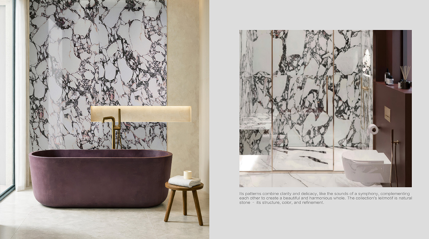 本系列靈感源自天然獨特的卡拉卡塔紫羅蘭石材。其粗細交錯、層次豐富的紫色紋理,在純淨基底上自在延展,形塑出極具時尚感與藝術張力的色彩語彙。