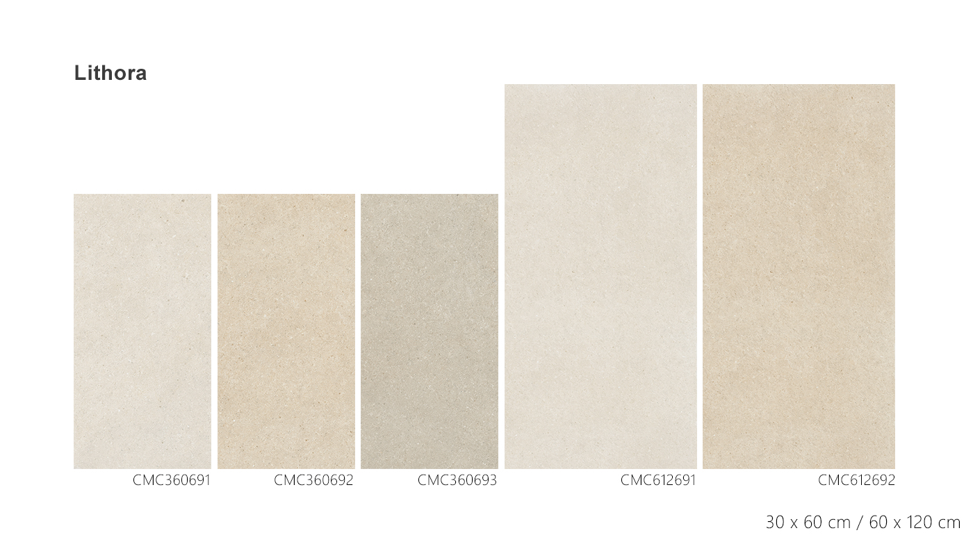 Lithora 揉合石質與當代設計語彙,展現細膩紋理與溫潤觸感,鋪陳細膩深度。