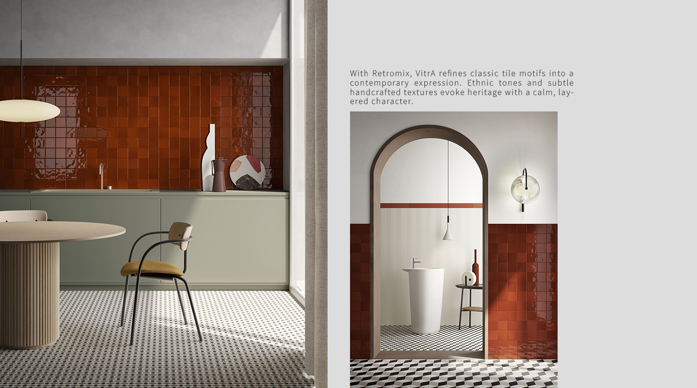 Retromix 系列,重新詮釋經典磚紋,轉化為洗鍊的當代語彙。