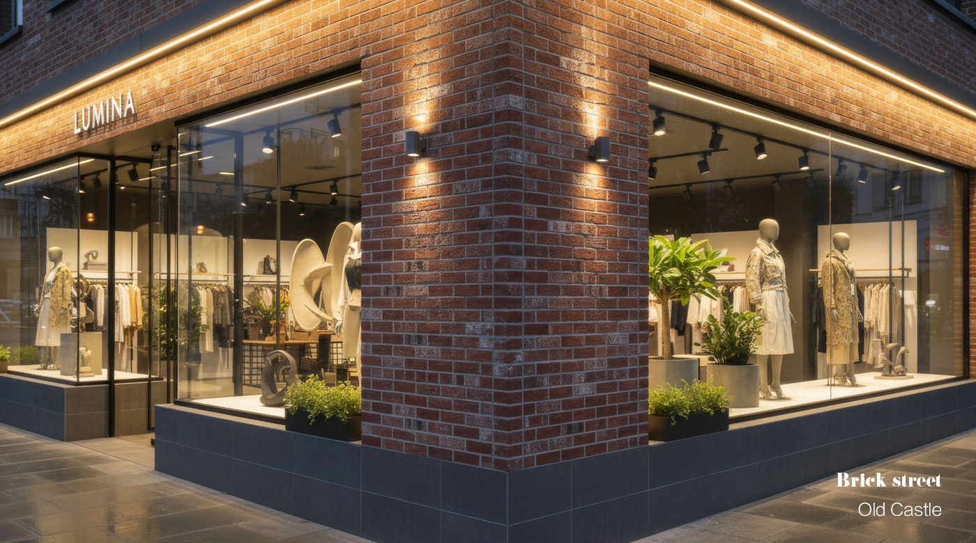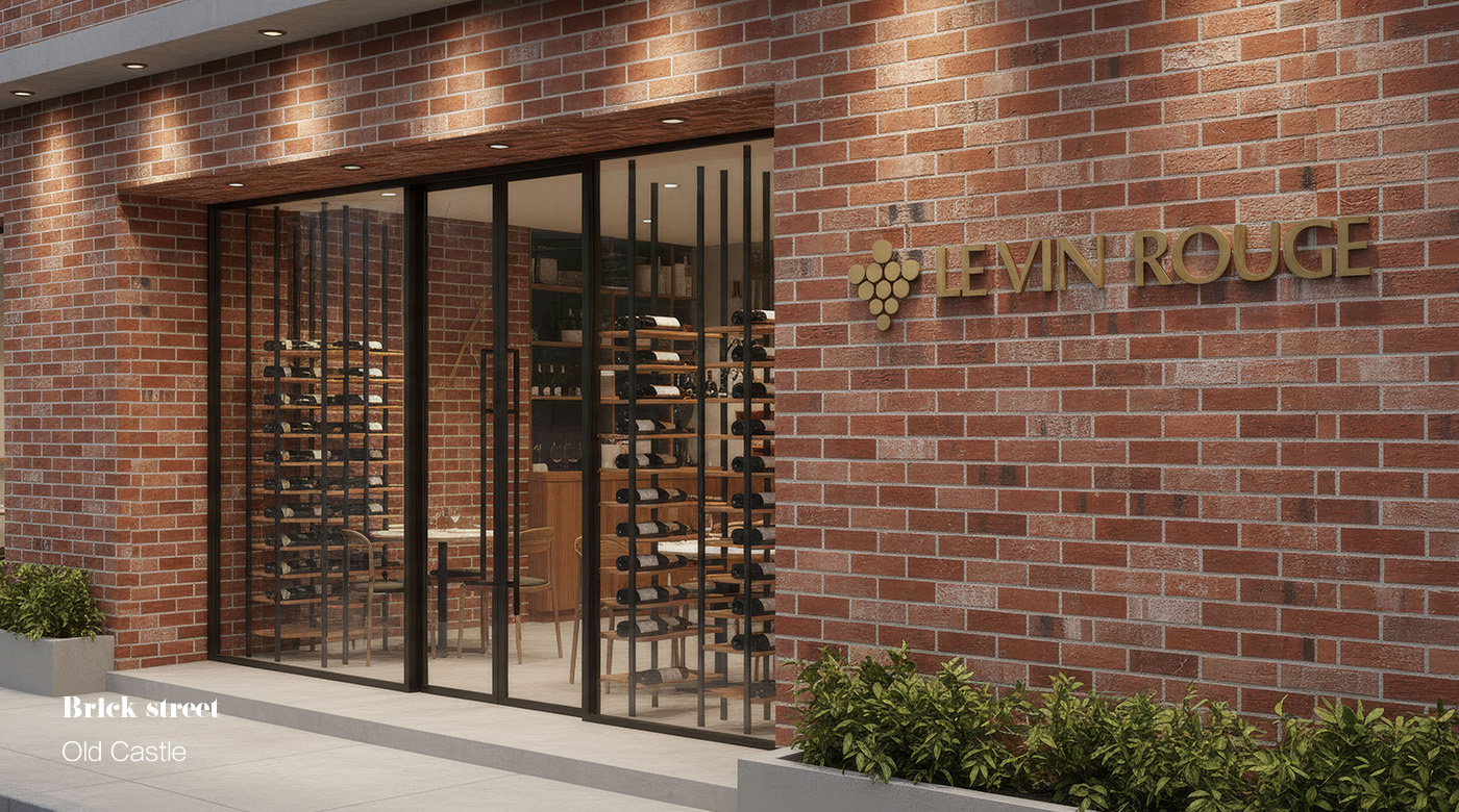 這款老磚紅的設計靈感源自城市街區的歷史風貌。色彩層次豐富、對比鮮明的老磚紅,結合自然凹凸表面紋理,彷彿歲月洗鍊後的城市牆面。當燈光映照其上,光影在磚面間流轉,營造出溫暖而富有故事感的氛圍,特別適用於餐廳與咖啡廳等商業空間,形塑獨特的品牌印象。